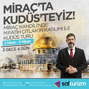 2 Nisan – 5 Nisan 2019 tarihleri arasında, Miraç Kandili’ne Özel, Araştırmacı Yazar M.Fatih Çıtlak’ın Katılımı ile 3 Gece 4 Gün Kudüs Turu